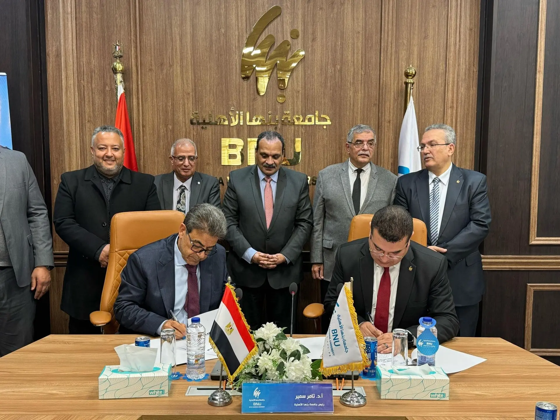تم توقيع مذكرة تفاهم بين النقابة العامة للأطباء البيطريين برئاسة النقيب العام الدكتور/ مجدي حسن، بالشراكة مع كلية الطب البيطري بجامعة بنها الأهلية بحضور الأستاذ الدكتور/ تامر سمير؛ رئيس جامعة بنها الأهلية.